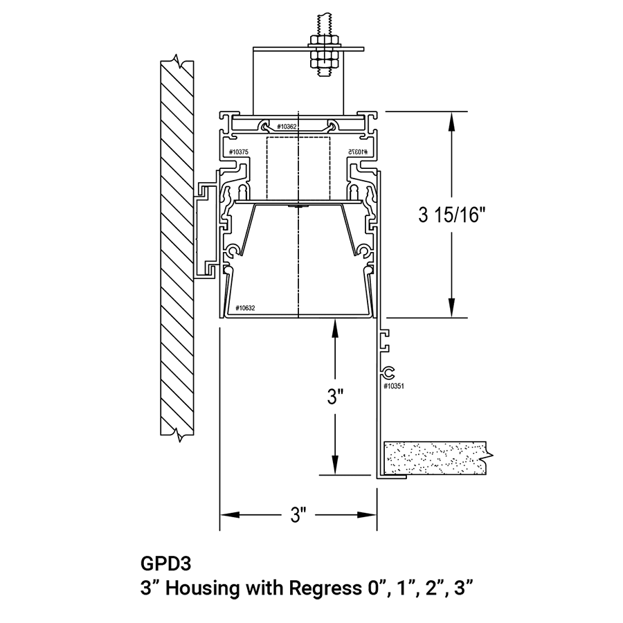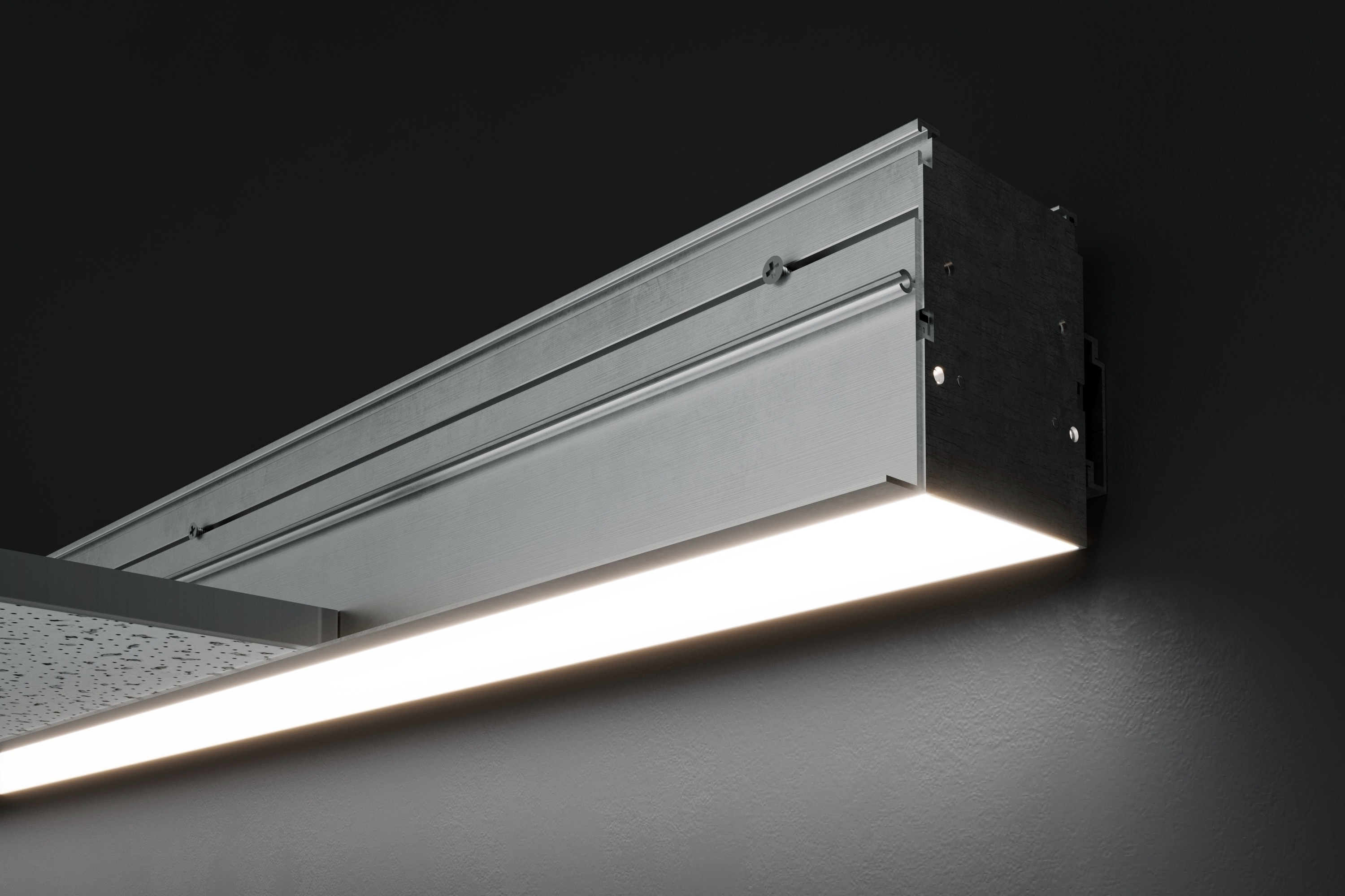 - 3” wide linear lighting system for perimeter lighting, recessed in grid or hard ceiling direct illumination. -