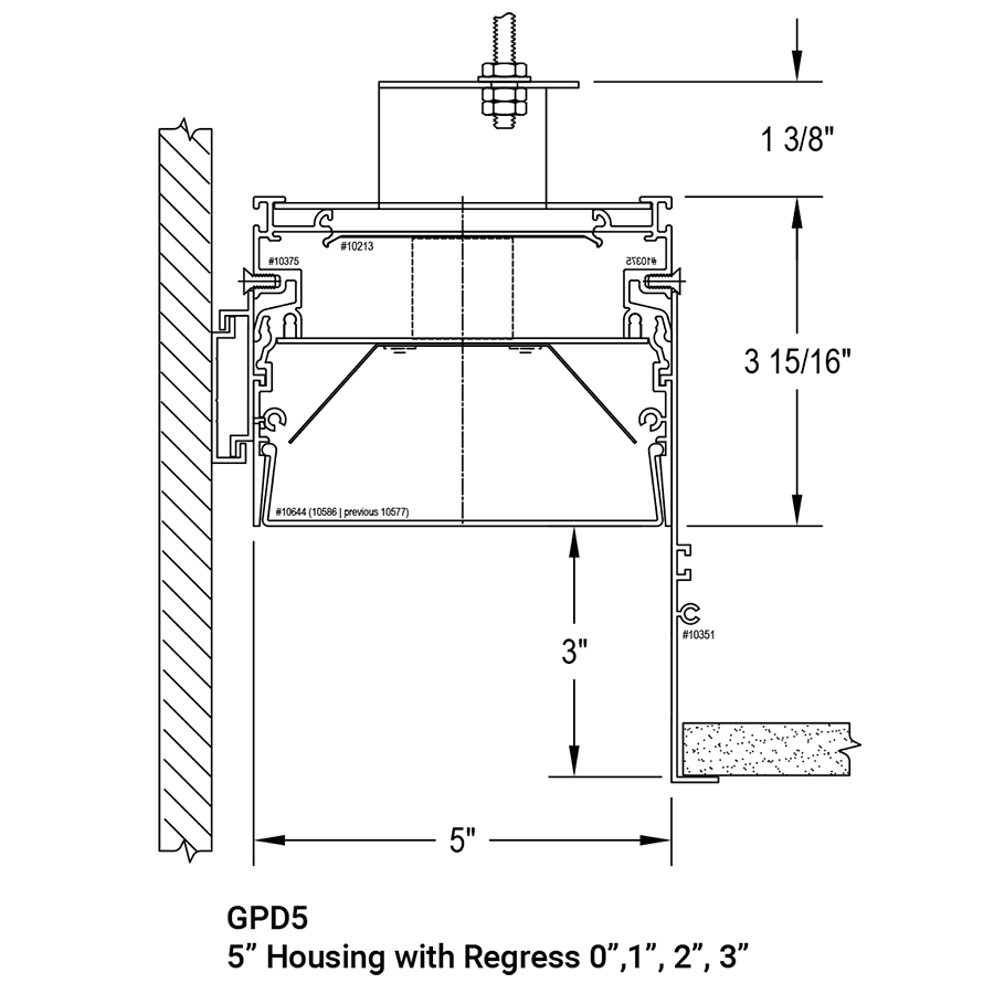 - 5” wide linear lighting system for perimeter lighting, recessed in grid or hard ceiling direct illumination. -