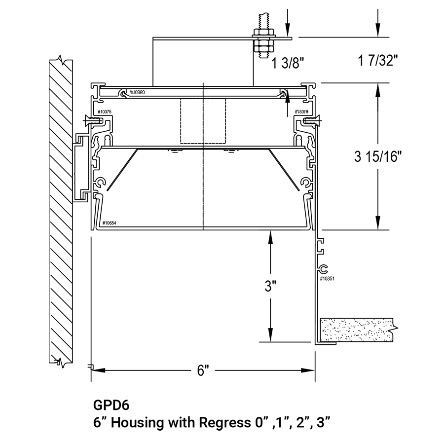 - 6” wide linear lighting system for perimeter lighting, recessed in grid or hard ceiling direct illumination. -