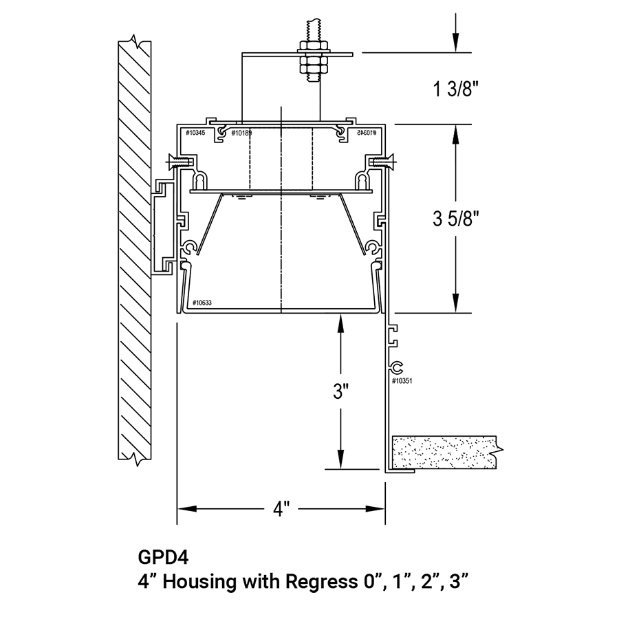 - 4” wide linear lighting system for perimeter lighting, recessed in grid or hard ceiling direct illumination. -
