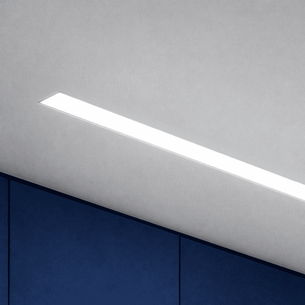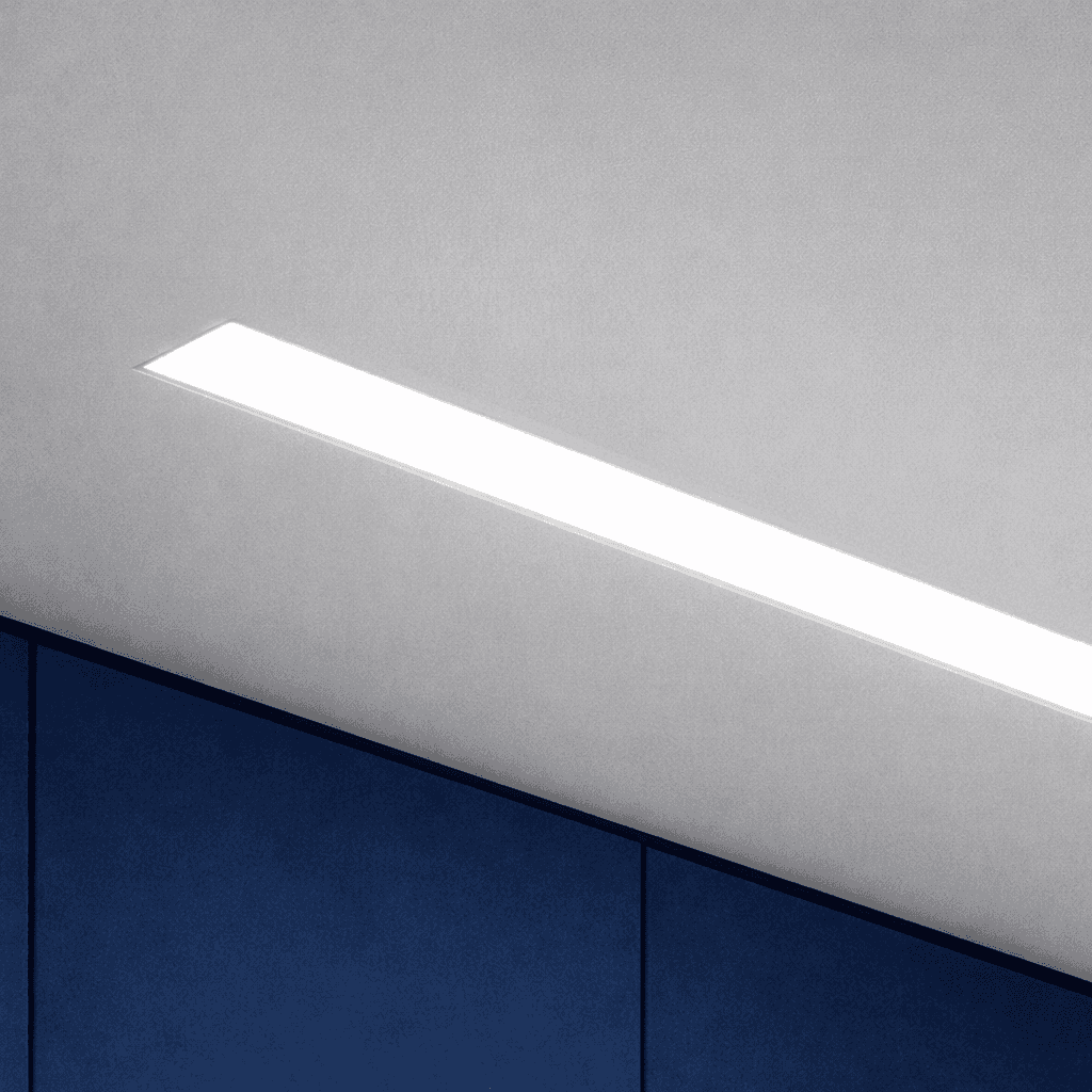 Using a standard product with a modification, 3’ of the housing is recessed into a drywall ceiling via a fully integrated mud flange, with 5’ of the housing suspended in an open space to create a unique yet breathtaking effect.