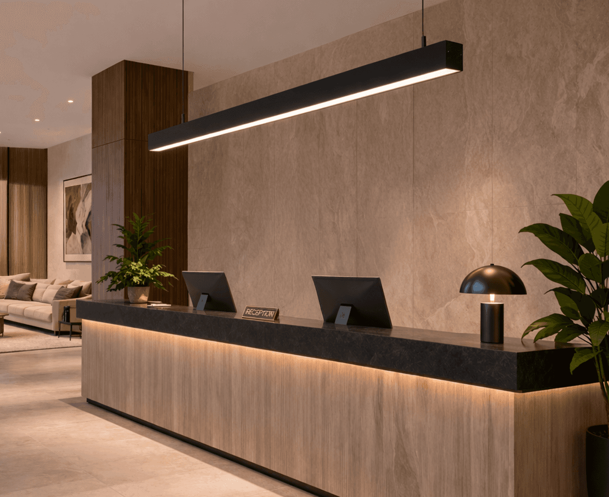 Enhances vertical surfaces with linear light, adding depth, texture, and ambient layering along corridors and feature walls.