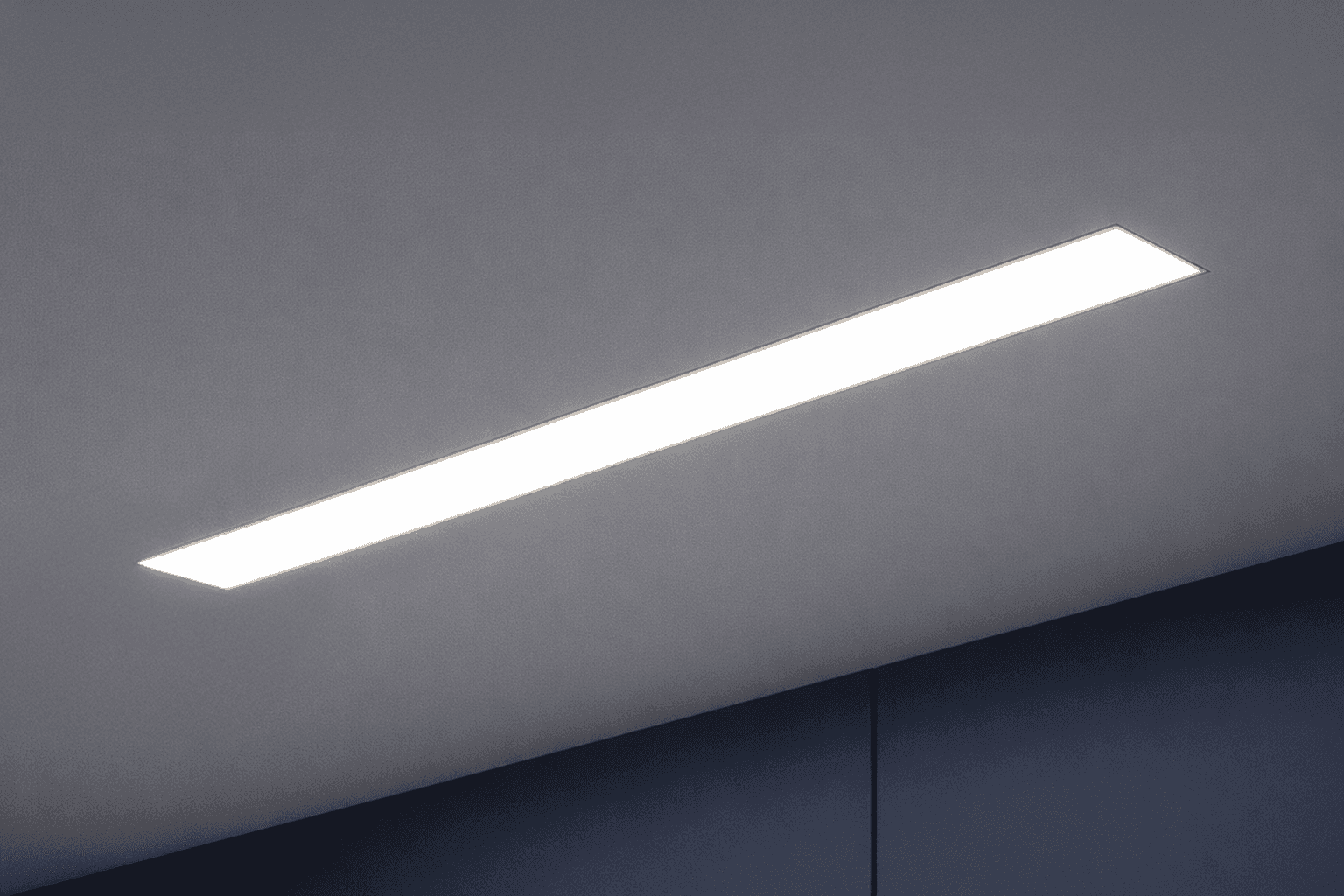 Fully integrated into the ceiling for a minimal, uninterrupted appearance with continuous lines of light.